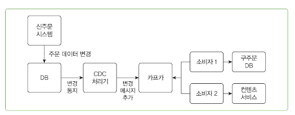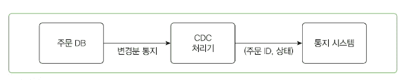 이 평소처럼 주문을 처리하고 DB에 데이터를 저장/수정- CDC가 DB의 변경 내역을 실시간으로 감지합니다.