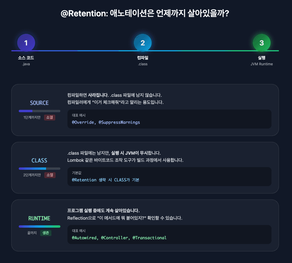 @Retention(RetentionPolicy.RUNTIME) // 실행 중에도 읽어야 하니까 RUNTIME 필수!
