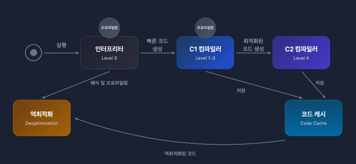 이후 실행: 컴파일된 코드 직접 실행Tiered Compilation