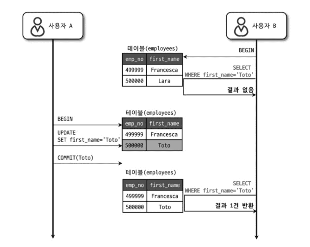 - 그때부터 다른 트랜잭션에서도 새롭게 변경된 "Toto" 값을 참조 가능
